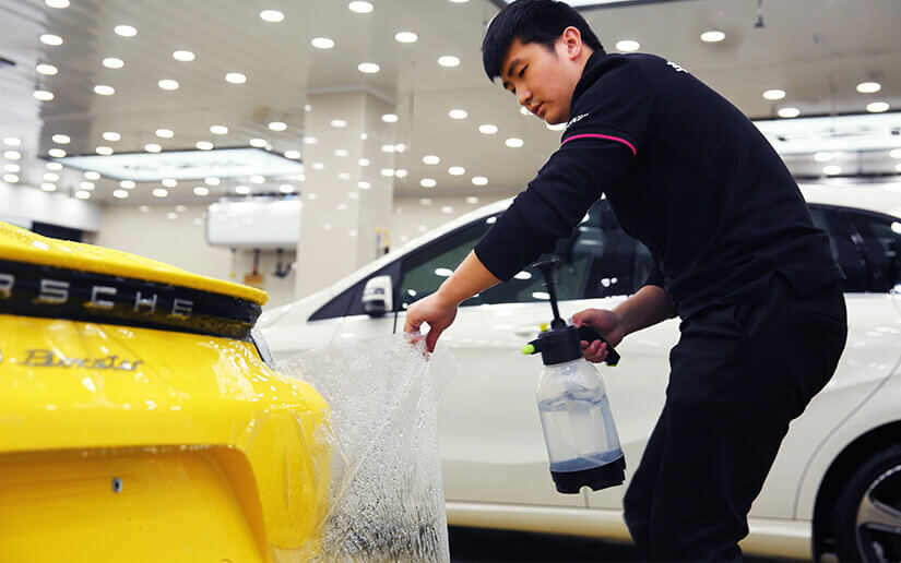 车艺佳共有多达100余个专业施工位,每个店内均配备无尘喷淋降尘系统、空调、加湿器等专业施工设备,为贴膜营造专业无尘的施工环境,确保品质贴膜。