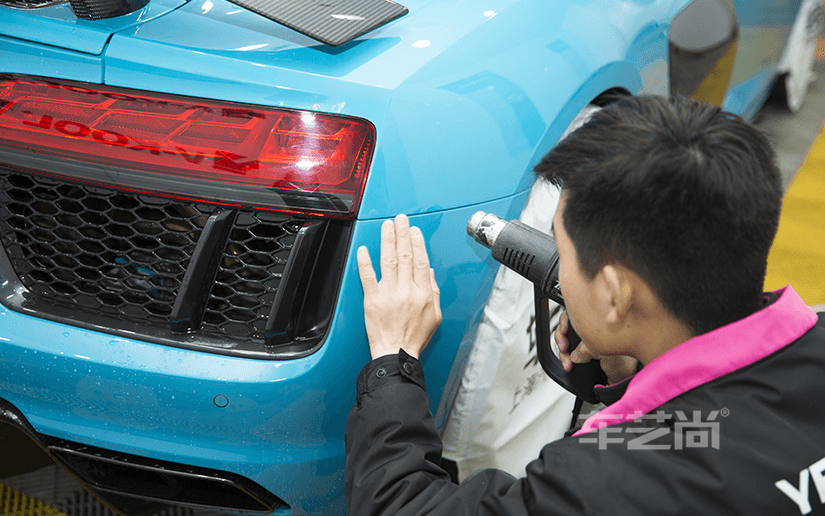 施工车型:奥迪R8(浅蓝色)