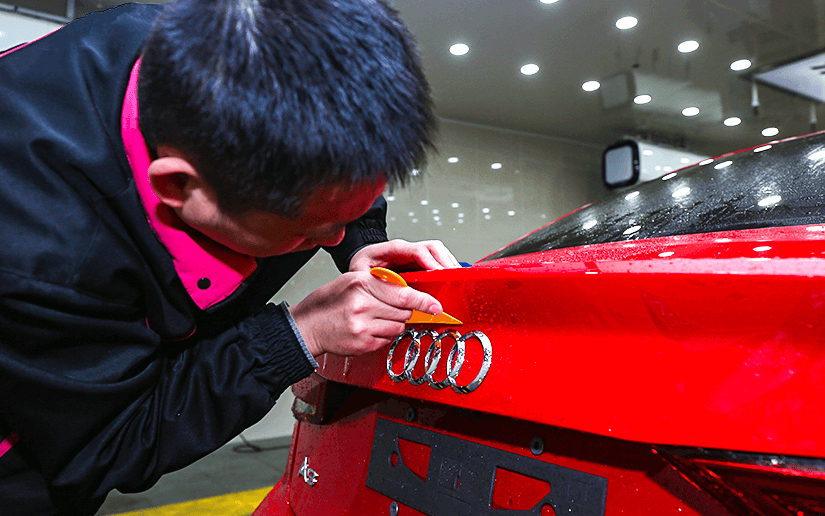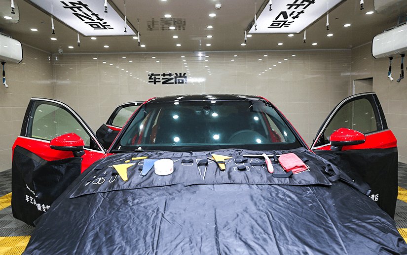 在我们眼中,每一辆车都是艺术品,采用专业无腐蚀清洁车身的每一个细微边角,确保靓丽无尘施工。