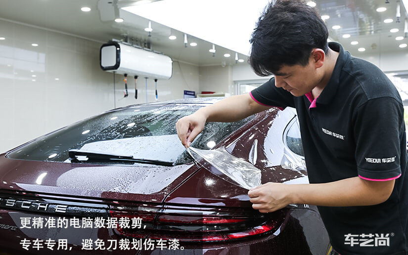 车艺尚隐形车衣贴膜采用超十万原厂车辆数据,电脑裁剪系统,实时更新主流车型数据,不动刀、不拆件、无划痕专业贴膜施工。